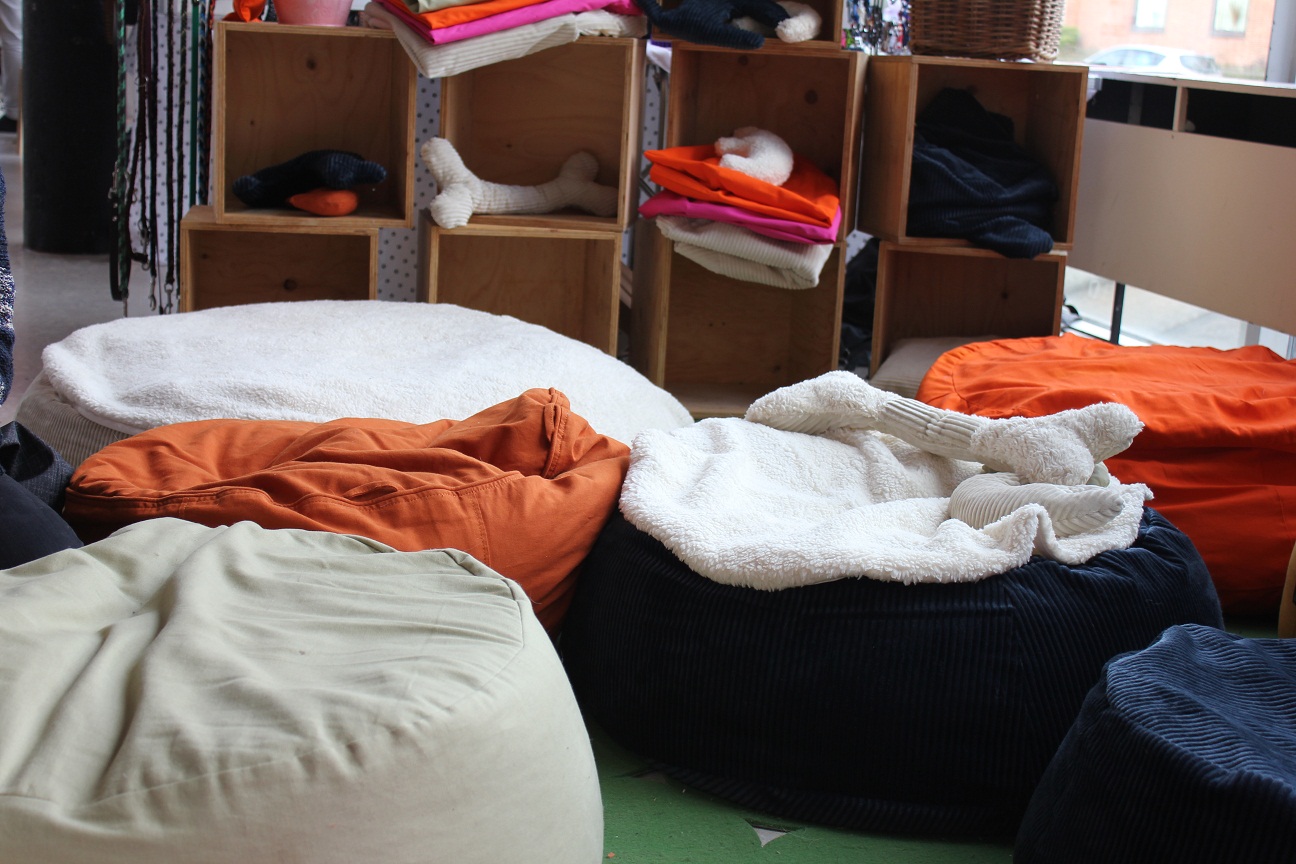 Spannend fand sie auch die Produkte von Grüne Pfote. Die sind noch relativ neu am Markt und stellen nachhaltige Hundekissen und Spielzeug für uns Rabauken her. Farben und Material lassen sich aus einer vorgegebenen Farbkarte selbst auswählen und zusammenstellen. Gefüllt sind die aus Breitcord oder Segeltuch hergestellten Kissen mit Dinkelspreu, welches zusätzlich zur Nachhaltigkeit auch noch einen gelenkunterstützende Wirkung haben soll. Unsere Favoriten sind das Spielzeug Bello (wie hat sie gesagt? „Vielleicht hat mein Hund nur deshalb ein Spielzeugproblem weil ich eines habe?“) sowie das große Kissen in blauem Breitcord mit heller Kuscheldecke.