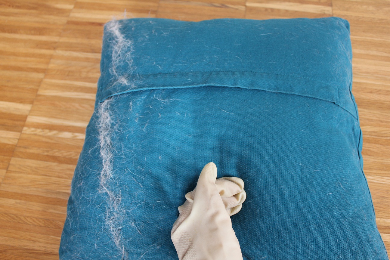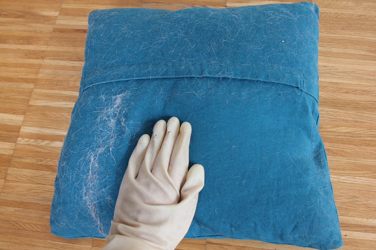 2. Der feuchte Gummihandschuh zur Entfernung der Hundehaare von fast allen Oberflächen