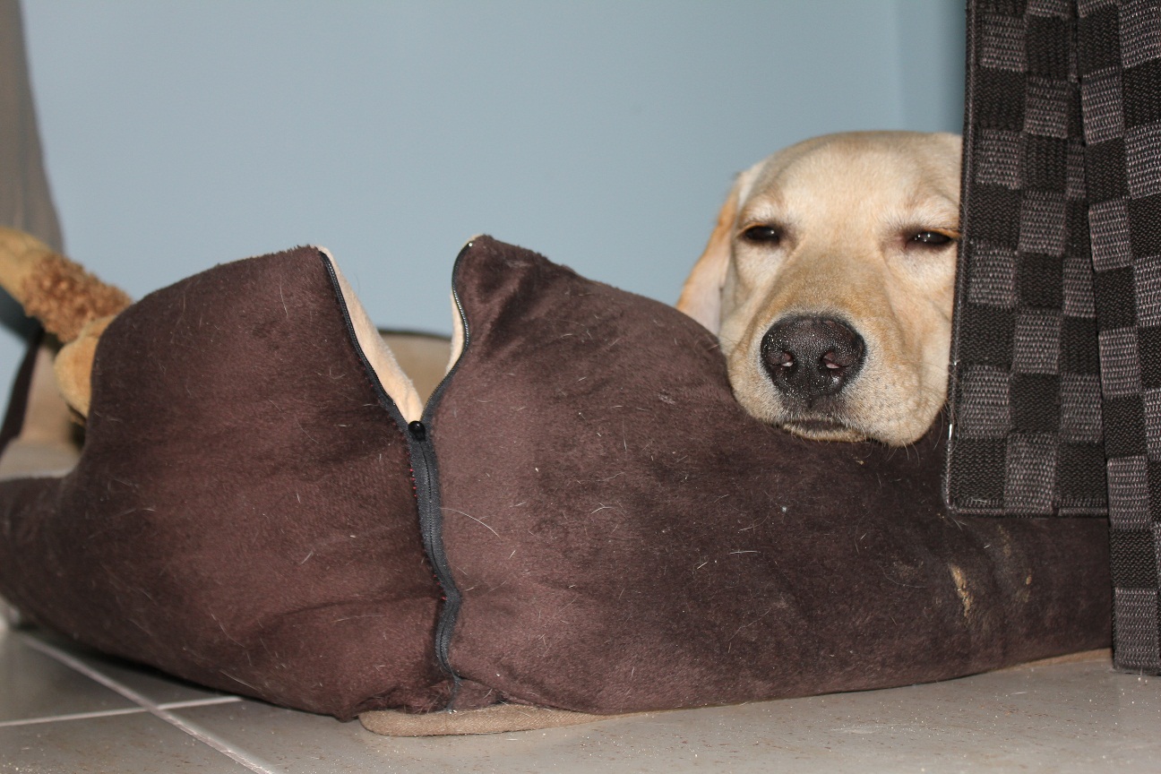 Heute haben wir ein festes Ritual. Möchte sie gehen, schickt sie uns auf unseren Platz. Das sind noch immer die Flugboxen, die sind riesig, stehen unter der Treppe und haben Matratzen plus Decke für uns. Dadurch haben wir eine richtig kuschelige Höhle darin und liegen gerne und oft dort.