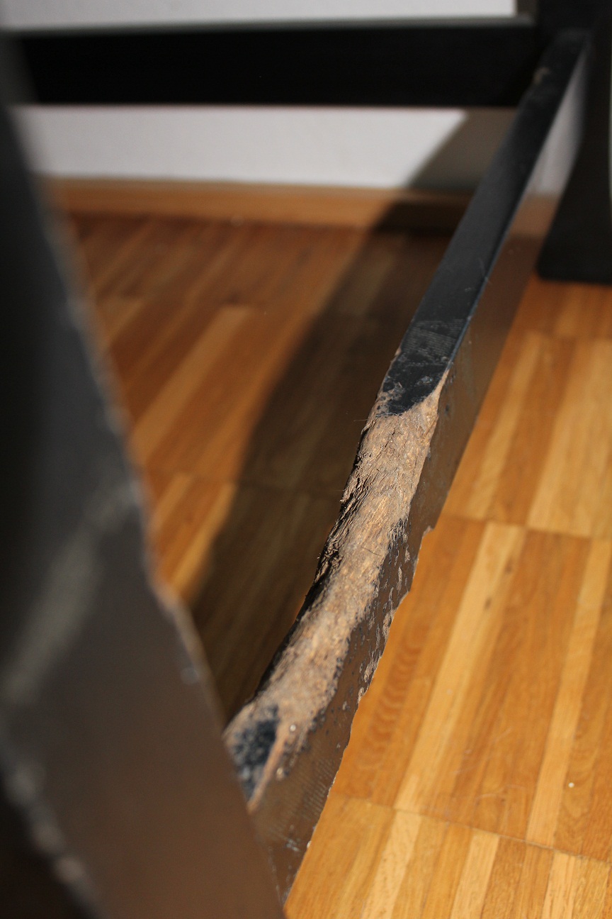 Nachdem ich ihr bewiesen hatte, dass ich brav sein kein, blieb die Tür zum Schlafzimmer angelehnt, so dass ich mich frei im Haus bewegen konnte. Damit war ich auch nicht mehr ganz allein, denn die Miezen sind tagsüber hin und wieder zu mir zurück gekommen und haben sich von all ihren Erkundungen ausgeruht. Hin und wieder war mir trotzdem etwas langweilig. Die Mitbewohnerin hatte die tollsten Sachen dagegen: Flip Flops mit Bastblumen, Oberteile mit langen Schnüren zum Binden und Plastikflaschen, die auf dem Couchtisch standen. Auch wenn sie sich immer liebevoll darüber lustig gemacht hat, dass die Mitbewohnerin wohl noch nie mit einem Rabauken zusammen gelebt hat, bin ich mir sicher, dass diese mir in Wahrheit kleine Liebesbeweise hinterlassen hat.