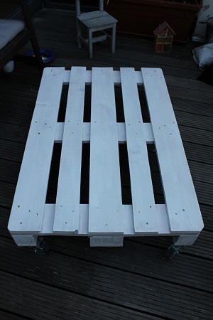 Geile Idee! Welch‘ Zufall, dass ich noch eine Palette in der Garage habe und sogar noch 4 Rollen… und es ist langes Wochenende. Mensch – mein Projekt steht! Dank für dieses tolle DYI