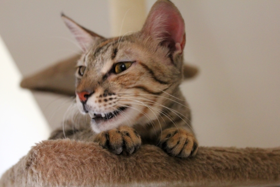 Zuerst einmal wollen wir euch die beiden Granaten vorstellen. Da ist einmal Clara aka Psychocat. Wie wir alle ist sie ein Doha-Special, ein katarisches Straßentier. Gefunden bei einem abendlichen Spaziergang und 45 Grad. Verzweifelt miauend lief der strubbelige Winzling über die Straßen, weit und breit kein Muttertier in Sicht. Da sie bei diesen Temperaturen die nächsten Tage wahrscheinlich nicht überstanden hatte, fasste sie sich ein Herz und nahm das kleine schmutzige Ding in ihrem T-Shirt eingewickelt mit in das damals noch katzenexklusive Haus. Sehr begeistert war die herrschende Mieze im Haus nicht, den Kater hatte Clara jedoch schnell um den Finger gewickelt. Von ihm lernte sie alles, was sie noch lernen musste, und das war eine ganze Menge!
