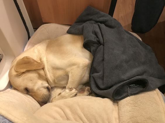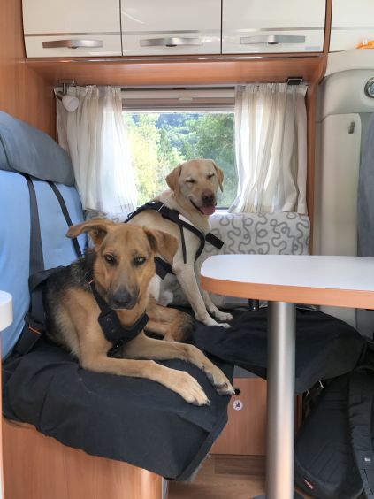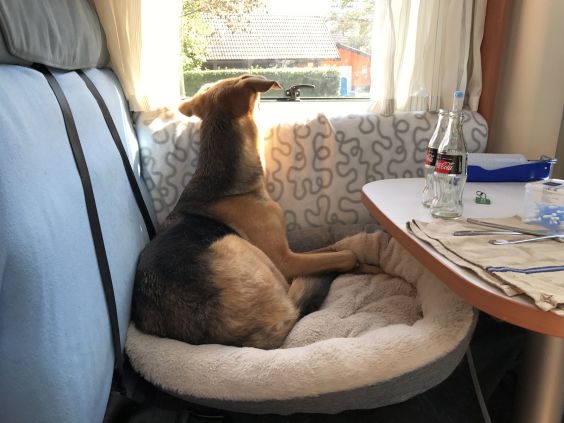 Da wir kein eigenes Wohnmobil haben und ich das erste Mal ein Fahrzeug dieser Größe gefahren bin, haben wir uns eines geliehen. Obwohl es diverse auf Reisende mit Hund spezialisierte Anbieter gibt, haben wir uns letztendlich für einen Vermieter vor Ort entschieden. Die beiden Hunde waren im Wohnmobil von seiner Seite aus gar kein Problem und er hat mit Rat und Tat zur Seite gestanden bei all den vielen Fragen, die ich hatte. Unseres Erachtens nach wäre der einzige wirkliche Vorteil eines speziell auf Hundebesitzer abgestimmten Verleihs eine eventuelle Box für die Fahrt gewesen, wir haben uns jedoch für Schondecken und Anschnallgurte entschieden und so eine zufriendenstellende Lösung gefunden.