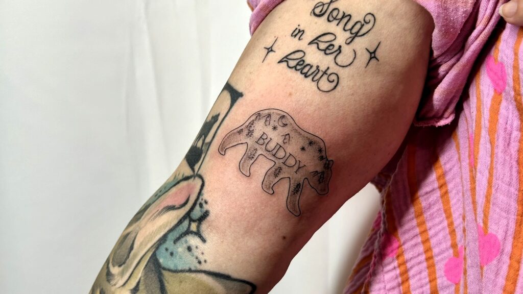 Als ich meine Tätowiererin besuchte und um Umsetzung meiner Idee bat, tat sich ein weiteres Erinnerungsstück von alleine auf: Ich würde mir seine Marke auf den Arm tätowieren lassen. Das Wunschbild würde Sarah dennoch für mich umsetzen.